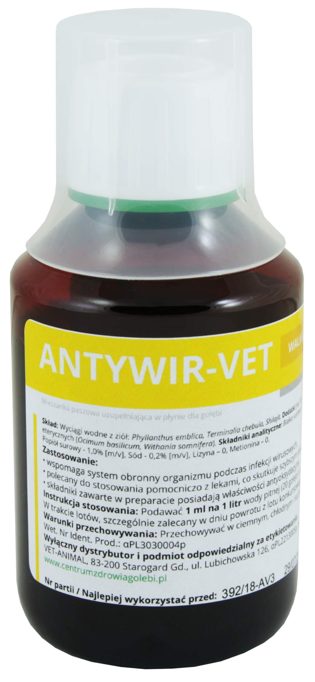 Instrukcja stosowania: Podawać 1 ml na 1 litr wody pitnej (20 gołębi) przez 5 dni. W trakcie lotów zalecany w dniu powrotu z lotu konkursowego. W ciężkich infekcjach wirusowych wskazane stosowanie z IMMUNO-VET.