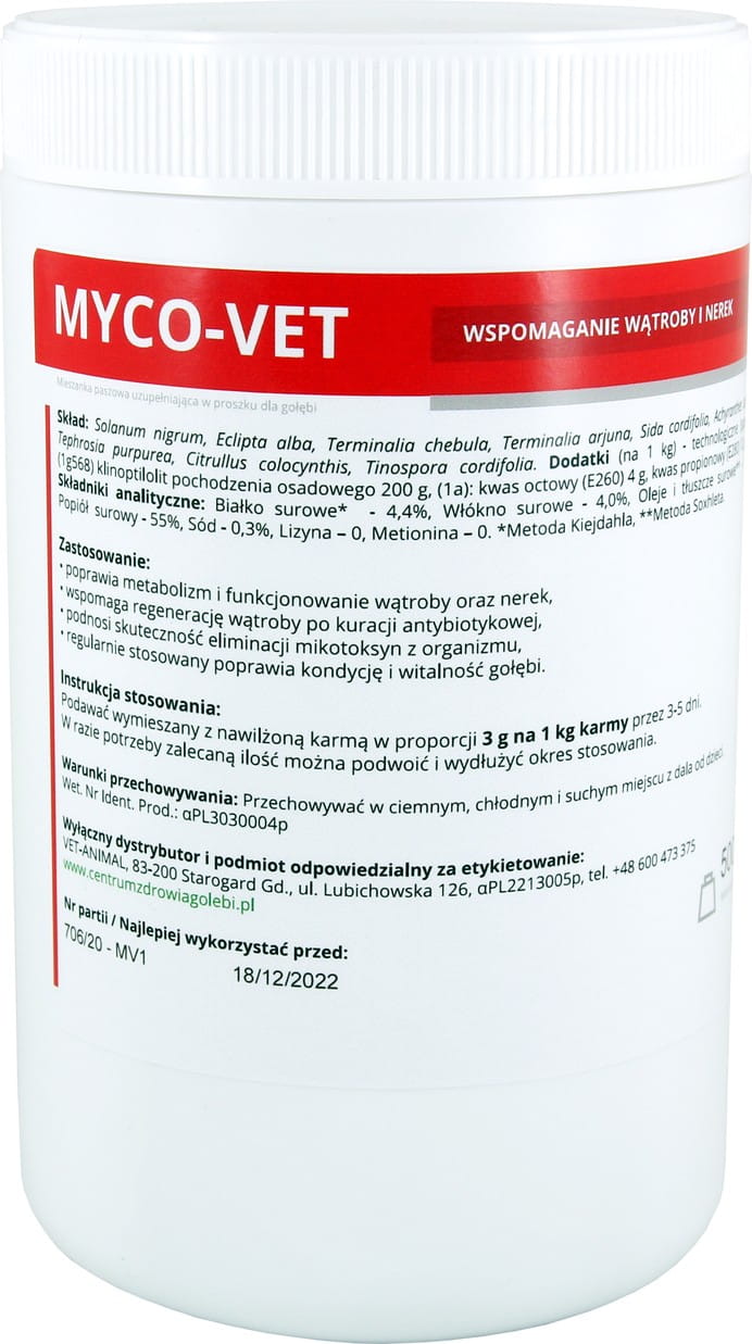 Zastosowanie: • poprawia metabolizm i funkcjonowanie wątroby oraz nerek przez cały rok, • wspomaga regenerację wątroby i po kuracji antybiotykowej, • podnosi skuteczność eliminacji mykotoksyn i grzybów z organizmu, • regularnie stosowany poprawia kondycję i witalność gołębi.